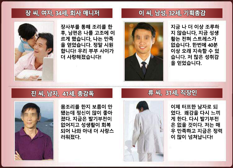 남자의 기풍을 되찾는 데 도움을 줄 수 있습니다. 당신의 애인 랑 섹스할 때 지르게 합니다! 당신에게는 그만두지 못하면철저히 당신 복종합니다!